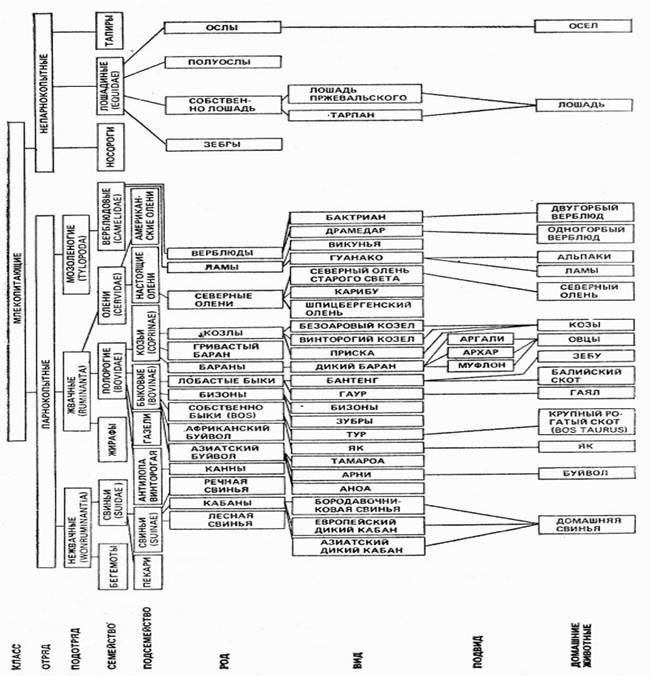 Табл. 1. Схема происхождения основных видов сельскохозяйственных животных.
