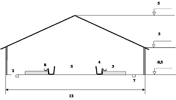 Рис. 2 Вертикальный разрез коровника для дойный коров.