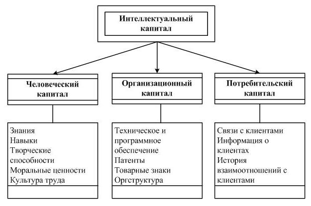 Практически все исследователи этого вопроса и менеджеры выделяют три составляющих интеллектуального капитала: