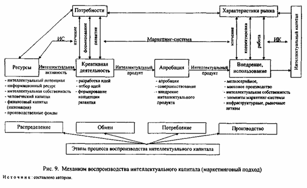 Выработка и окончательное формирование инновационной идеи происходят на основе взаимодействия с потребителем в процессе маркетинговых исследований. В этот начальный момент овеществления интеллектуального капитала оценкой перспективности и коммерческой значимости инновационной идеи является потребительская ценность будущей продукции.