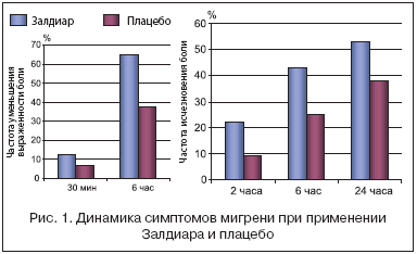 2 – применение комбинированного анальгетика трамадол/парацетамол (Залдиар) в дозе 75/650 мг при мигрени достоверно уменьшает выраженность головной боли, фотофобии и фонофобии.