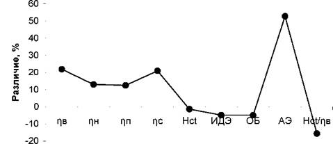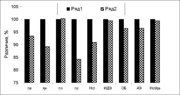 была статистически достоверной (p<0,05). Показатель эффективности транспорта кислорода (ПЭТК) был достоверно ниже у лиц с метаболическими нарушениями (на 13 %, p<0,05).