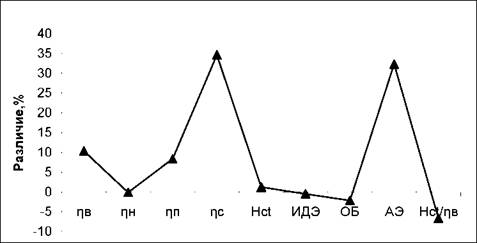 Обозначения: пв - вязкость крови при высокой скорости сдвига; пн - вязкость крови при низкой скорости сдвига; пп - вязкость плазмы; пс - вязкость суспензии эритроцитов с Hct=40 %; Hct - показатель гематокрита; ИДЭ - индекс деформируемости эритроцитов; АЭ - агрегация эритроцитов; Hct/пв - эффективность транспортного потенциала крови.