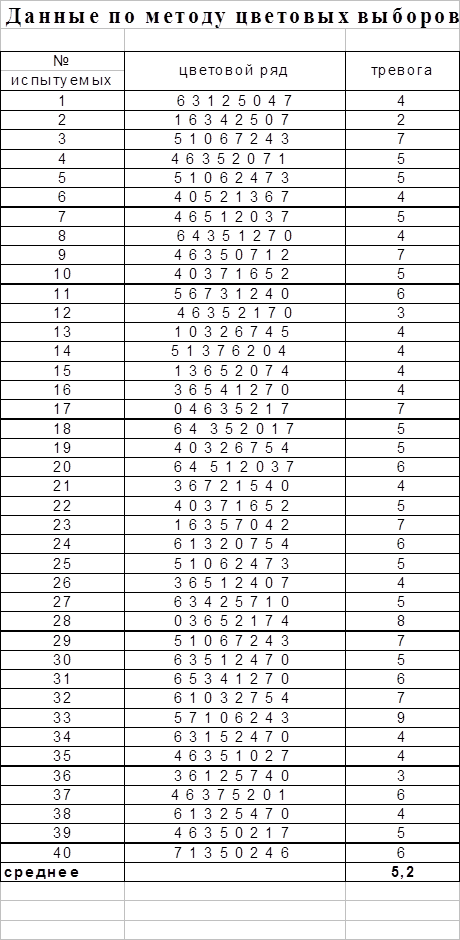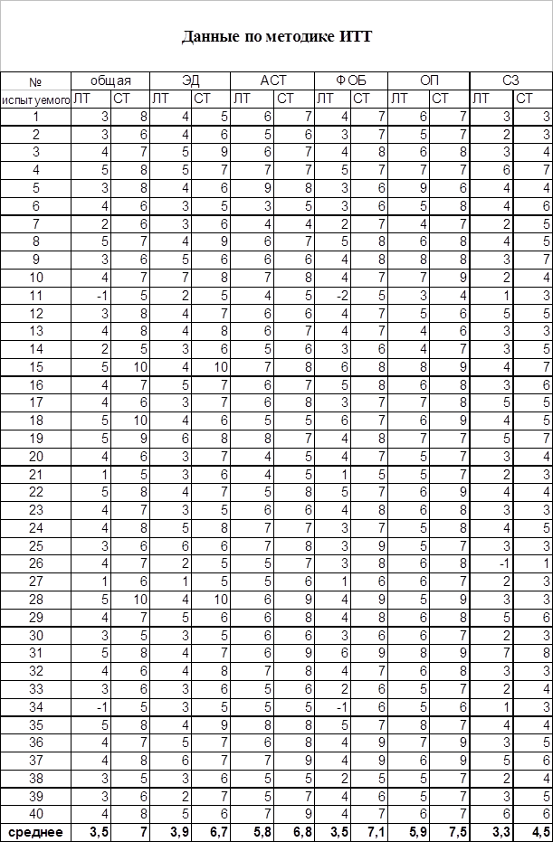 Данные по методике ЛД