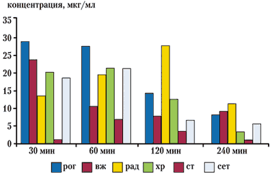 Рис. 1. Распределение бетаксолола в тканях глазного яблока при его местном применении