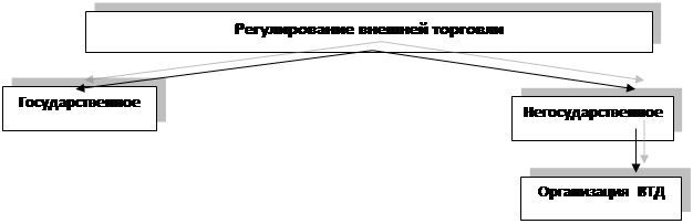 Государственное регулирование внешней торговли дополняется негосударственным. К нему относится организация ВТД, основной ее задачей является обеспечение полной свободы торговых отношений, путем предоставления различных возможностей проводить протекционистскую политику, а так же сводный импорт других товаров. ВТД стала независимой организацией, которая получила статус юридического лица.