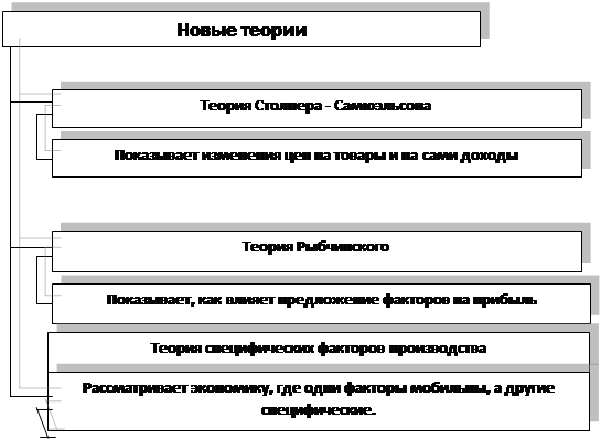 В период времени после войны в экономической литературе всего мира, появился целый ряд новых подходов, которые объясняют всесторонние аспекты внешней торговли. Все исследования велись на примере развития классической теории Смита – Риккардо - Милля, и рассматривался факторный анализ теории Хекшера - Олина. Основной проблемой, которая рассматривалась, являлась проблема распределения прибыли, как внутри государства, так и вне его. В теориях относительных и абсолютных преимуществ, а также в теории международной стоимости, эти вопросы не рассматривались, так как считалось, что торговля не оказывает никакого влияния на распределения доходов внутри государства. Но в каждом государстве имели как сторонники так и противники свободной торговли. То есть можно сделать вывод, что одни группы людей были в выигрыше от торговли, в то время как другие- несли убытки.