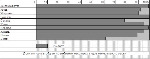 Структура импорта отражает процессы международной специализации промышленности, интернационализации хозяйства и бедность минеральной отечественной базы. Японию отличает самая низкая среди промышленно развитых стран степень самообеспеченности сырьем и топливом, страна почти полностью зависит от ввоза многих видов минерального и сельскохозяйственного сырья. Она выступает крупным покупателем минерального сырья на мировых рынках. На Японию приходится свыше 30% мирового импорта железной руды, свыше 19% руд цветных металлов, каменного угля, хлопка и шерсти, крупные позиции занимает рыба. В структуре импорта, как и в других ведущих развитых странах, основное место (но более низкое) занимают продукция машиностроения и химические товары - 35%.