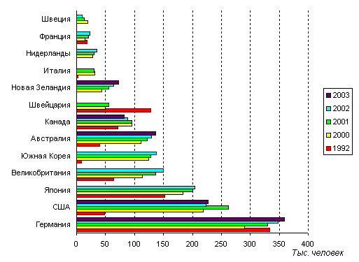 против 3,2 млн. в 1995 г. Если считать, что на каждого трудящегося-мигранта приходится 3 иждивенца, то численность мигрирующего населения в конце 90-х годов превышает 100 млн. человек.