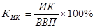 1) коэффициент импорта капитала (Кик ), отражающий долю иностранного капитала (ИК) в ВВП страны (ф-ла 1.1).: