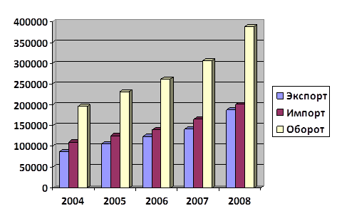 В период с 2004 по 2007 год наблюдалось достаточно интенсивное увеличение объемов товарооборота. в том числе, экспорта и импорта.