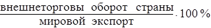 Доля страны в мировой торговле = ![]()