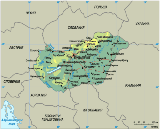Угорська Республіка - держава в Центральній Європі. Площа країни - 93,03 тис. кв. км., що складає один відсоток від загальної площі Європи. Угорщина межує на півночі з Словаччиною, Австрією, на сході - з Україною та Румунією, на півдні - з Румунією, Сербією та Хорватією, на заході - з Австрією.
