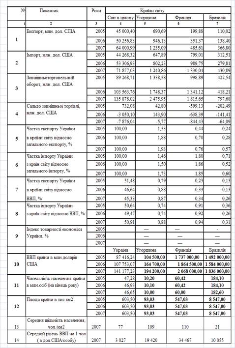 Аналіз міжнародних економічних відносин України, Угорщини, Франції та Бразилії