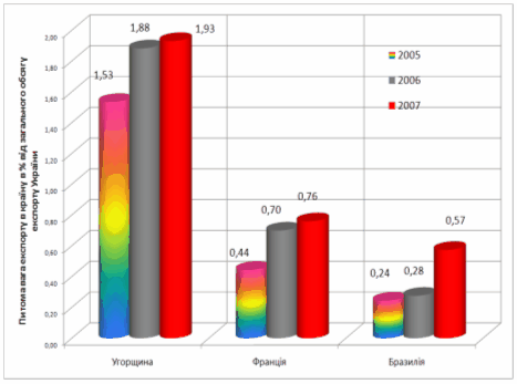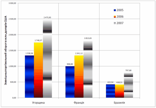 2.1 Рівень міжнародної торгівлі між Україною та Угорщиною, Францією і Бразилією