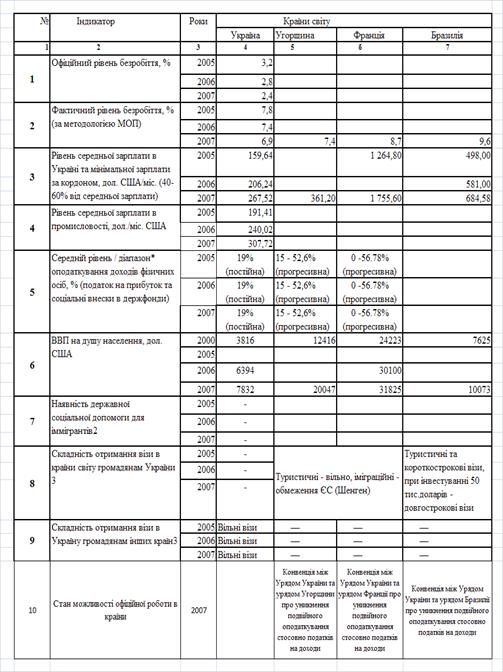 2.2 Рівень міжнародної міграції трудової сили між Україною та Угорщиною, Францією і Бразилією