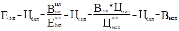 В умовах повної неконвертованості національної валюти показники ефекту експорту (Еексп ) та імпорту (Еімп ) обов'язково повинні враховувати купівельну силу відповідних валют. З урахуванням введених раніше позначень, Еексп та Еімп визначаються за формулами:
