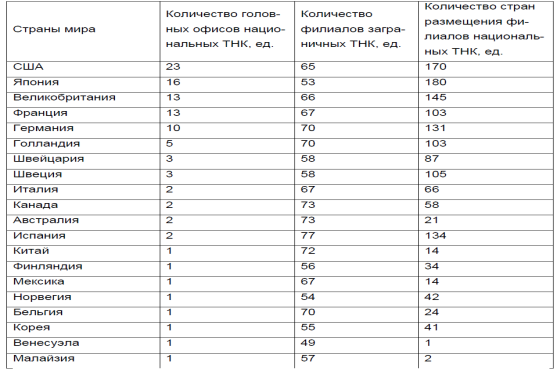 По данным ЮНКТАД на начало 2009 г. в мире насчитывалось около 82 тысяч нефинансовых ТНК с 805-ью тыс. зарубежных филиалов (табл. 1).