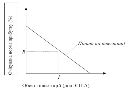 Рис. 1.1 Співвідношення ставки відсотка та обсягів інвестицій