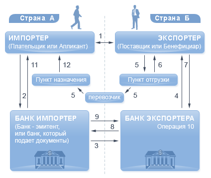Отримавши документи, банк-емітент перевіряє їх, після чого переказує суму платежу банку експортера, дебетуючи рахунок імпортера. Банк експортера зараховує виручку бенефіціару. Імпортер же, одержавши від банку-емітента документи, одержує за ними у власність товари від перевізника.