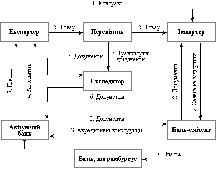 Схематично розрахунки у формі документарного акредитива зображені на рис. 1.