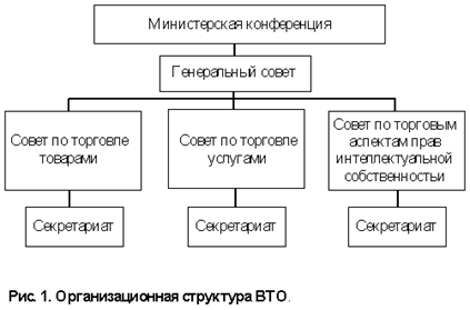 Организационная структура ВТО. Органы управления ВТО имеют три иерархических уровня (рис. 1).