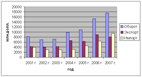 Таблица 1.1 Взаимный товарооборот России и США в 2001 – 2007 гг. (млн. долл.)