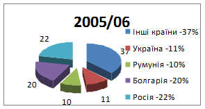 Структура світового імпорту соняшнику за 2005/06 рік відображено на рис.1.