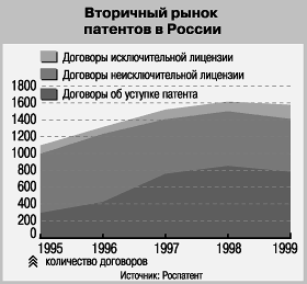 Пребыванию нашей страны на периферии мирового рынка интеллектуальной собственности способствует еще и то, что советское руководство никогда не проявляло к этому рынку особого интереса, так что мы на нем, по сути, новички. На долю бывшего СССР приходился 1% мировых продаж лицензий. За все время существования Союза за границу было продано 3500 технологий, больше двух третей этих сделок (68,8%) приходилось на страны социалистического лагеря, которым советский интеллектуальный продукт передавался на бесприбыльной основе. Лишь 21% этих лицензий был передан в промышленно развитые страны. (3) А действительно революционные технологии в лицензионном обмене бывшего СССР можно было пересчитать по пальцам одной руки. Многие ноу-хау, обладающие большим коммерческим потенциалом, приберегали для внутреннего употребления. Наиболее известные примеры продажи советских лицензий на Запад — технология непрерывной разливки стали, магнитно-импульсная сварка, а также медицинский «степлер», используемый для сшивания тканей во время хирургических операций. (13)