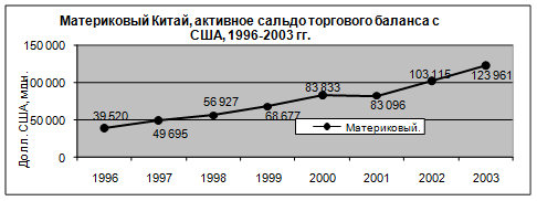 Мнения экономистов в отношении важности торгового баланса расходятся. Некоторые указывают на то, что торговый дефицит как часть валового внутреннего продукта чрезмерным не является, хотя и превышает условный предел, установленный на уровне 5%. Другие указывают на опасность увеличения доли американских финансовых обязательств, находящихся в руках иностранцев, что, если бы вера последних в американскую валюту пошатнулась, могло бы вызвать кризис доверия в Соединенных Штатах и дестабилизировать мировую экономику, в которой американский доллар остается основной резервной валютой. Общеизвестно, что торговля выгодна обоим партнерам. Некоторые полагают, что торговля выгодна даже тогда, когда она не является взаимной (к примеру, американским потребителям выгодна продажа дешевой китайской продукции). Экономическая точка зрения является слишком узкой для того, чтобы охватить сложность аспекта торговли, ее изменчивое влияние на различные регионы и отрасли, в особенностиее социальное, политическое и геополитическое влияние. Легко выступить с макроэкономическим утверждением - «свободная торговля выгодна нам всем», легко также выступить сзаявлением о «торговле на основе взаимной выгоды», которое зачастую носит политический характер. Гораздо сложнее точно определить параметры этой взаимной выгоды, уст; повить, кто играет честно в новой игре, либо отобрать победителей (и проигравших). Игра в Китае может поменять местами все три категории»[11, c. 78]. Почему Соединенные Штаты наиболее уязвимы (хотя есть мнение, что США извлекают наибольшую выгоду) по отношению к импорту Китая? В отличие от Японии, которая на протяжении десятилетий поддерживал активный торговый баланс с внешним миром, Китай в мировой торговле достиг лишь незначительного активного сальдо, и в последнее время объемы импорта растут гораздо быстрее объемов экспорта. В то время как активный торговый баланс страны возрос до 11,5 млрд. долларов в январе 2004 года, общий торговый баланс Китая за февраль того же год; увеличился до 8 млрд. долларов (баланс пассивен). Это означает, что дела других торговых партнеров обстоят довольно неплохо и в торговле с Поднебесной они поддерживают более низкий уровень дефицита (Европейский Союз) либо значительное активное сальдо (Азия). (В 2002 году активное сальдо Китая с ЕС приблизилось к 50 млрд. евро, причем баланс является активным со всеми странами Евросоюза, за исключением Австрии и Финляндии.)