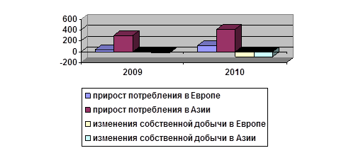 Анализ рисунка 3 показывает, что основными рынками потребления нефти на протяжении ряда лет останутся США, АТР и Европа. В дальнейшем эта ситуация скорее всего сохранится.