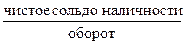 Чистое сальдо наличности рассчитывается как наличные средства по Активу баланса за минусом задолженности по кредиту. Оно показывает наличие свободных ликвидных активов I класса, которые можно использовать для погашения долга.