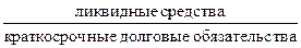 В учебнике "Банковское дело" для оценки кредитоспособности предприятий предлагается использовать три показателя, рассчитываемых на основе средних сальдовых данных балансов за истекший год: коэффициент ликвидности, коэффициент покрытия и показатель обеспеченности собственными средствами. Коэффициент ликвидности предназначен для оценки способности заемщика оперативно высвободить из хозяйственного оборота денежные средства и погасить долговые обязательства.