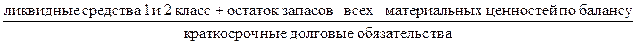 2. Коэффициент "быстрой" ликвидности(%)=![]()