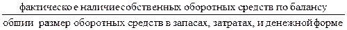| Показатель обеспеченности собственными средства ми (Псс) | Собственные средства: уставной фонд, остатки специальных фондов, не распределенная прибыль. | Общий размер основных и оборотных средств. |