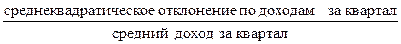 | Распределение запланированного дохода в течение года ( Р ). В пределах 30% распределение можно считать равномерным. | Среднеквадратическое отклонение по до ходу за квартал ( @ x ). | Средний доход за квартал. |