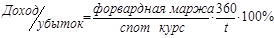 Если валюта котируется с премией, то своп принесет доход. Если валюта котируется с дисконтом, то своп будет убыточным. Доходность (убыточность) свопа в виде годовой процентной ставки определяется по формуле: