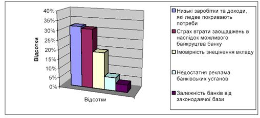 Рис. 2.3 Чинники, які стримують приплив грошових доходів громадян у банки [35]