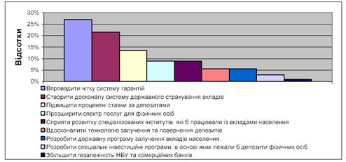 Рис. 2.4 Заходи для посилення припливу вкладів населення у національній валюті в банки України [35]