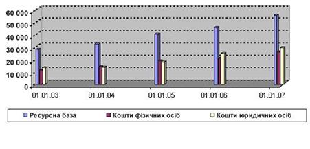 Рис. 2.5 Динаміка ресурсної бази банків за 2003–2007 роки (у млрд. грн.) [35]