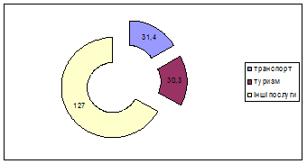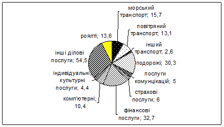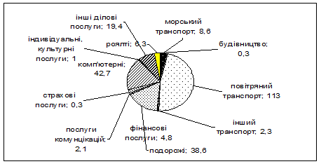 Товарна структура експорту послуг по всі видам послуг, 2005 р, млрд. дол.