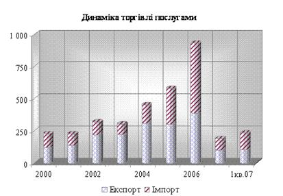Отже, прослідковується тенденція до зменшення сальдо балансу послуг, баланс послуг – пасивний через те, що імпорт послуг випереджає експорт.