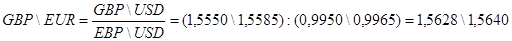 Для GBP/USD: Кф.прод = Кс.прод + П(-Д) = 1.5585 – 0.0019 = 1.5566