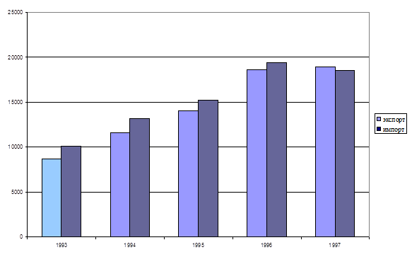 В 1997 году повысилась диверсифицированность внешнеторгового оборота. Так если в 1996 году на первую десятку партнеров приходилось 70% оборота, то в 1997 году – около 65%.