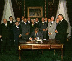 Президент США Д.Кеннеді підписує договір про заборону ядерних випробувань в атмосфері, космічному просторі і під водою |
