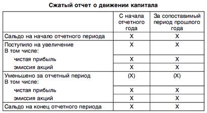 Сжатый формат отчетности предполагает, что в отчет включаются каждый из заголовков и промежуточных статей, которые были включены в последнюю годовую финансовую отчетность.