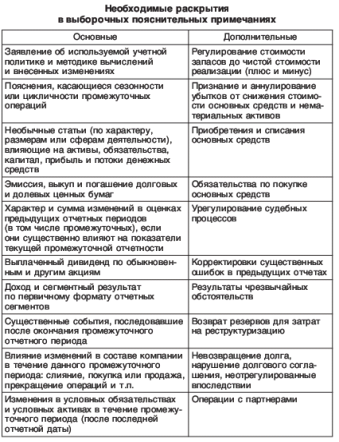 Каждый рассматривающий промежуточную финансовую отчетность имел в своем распоряжении годовую финансовую отчетность за предшествующий год. Поэтому примечания к годовой финансовой отчетности не повторяются и не обновляются в промежуточной отчетности. Последняя должна содержать примечания по тем событиям и изменениям, которые произошли после отчетной даты последнего годового отчета и раскрывают результаты деятельности компании в новом отчетном году.