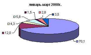 Диаграмма 1. - Товарная структура экспорта Российской Федерации в январе-марте 2008-2009 гг.(в процентах)