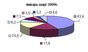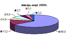 В структуре импорта России из стран СНГ в I квартале 2009 г. по сравнению с I кварталом 2008 г. увеличились удельные веса продовольственных товаров и сырья для их производства, продукции химической промышленности и текстиля, текстильных изделий и обуви. Снизилась доля металлов и изделий из них, машин, оборудования и транспортных средств, минеральных продуктов.