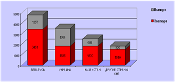 Диаграмма 2. - Внешняя торговля Российской Федерации со странами СНГ в I квартале 2009 г. ( по данным таможенной статистики, млн. долларов США)